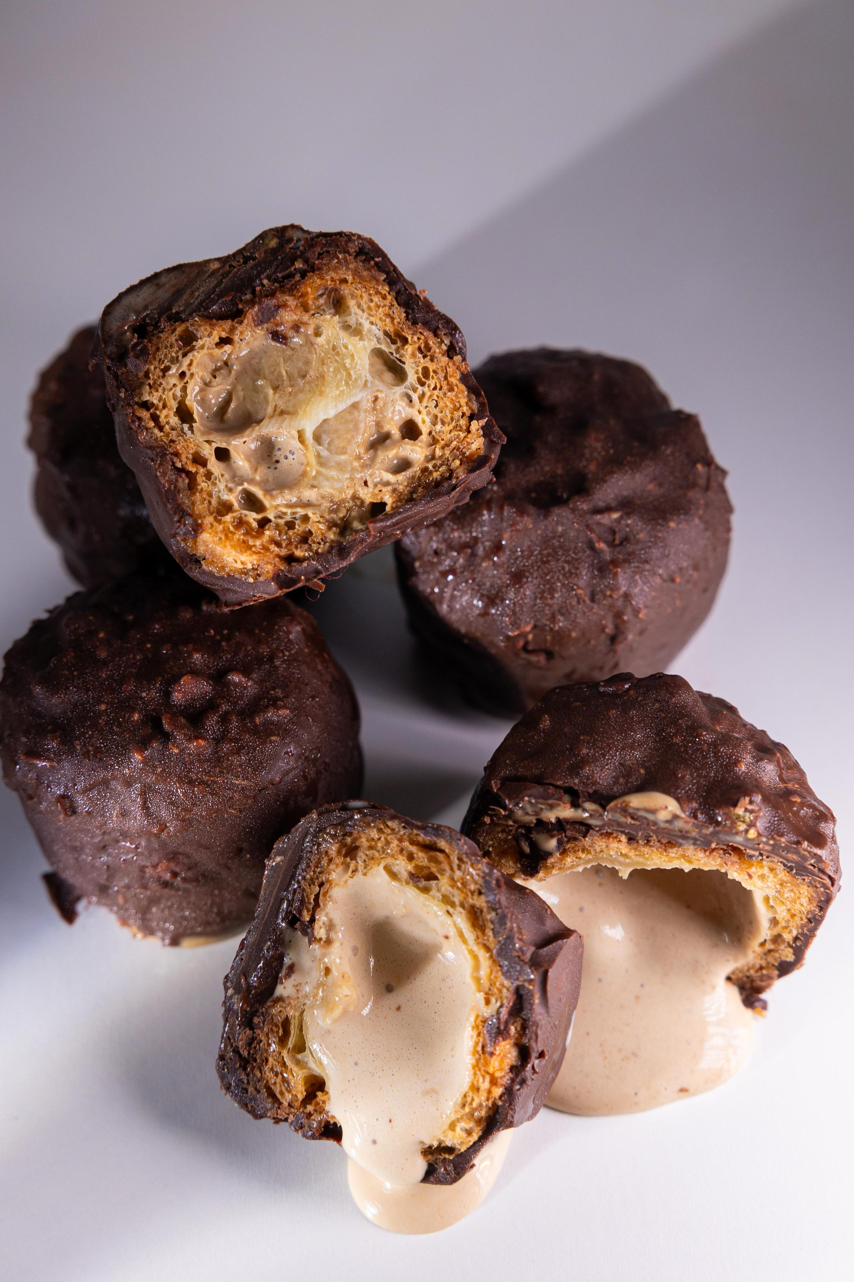 Looks innocent on the outside, but one bite reveals the mischief. A layer of chocolate, a crispy choux shell, and ice cream that melts into a molten surprise the longer you wait. Play it cool, or let it flow — either way, The Bluff always wins.
